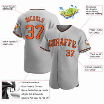 Custom Gray Orange-Black Authentic Baseball Jersey