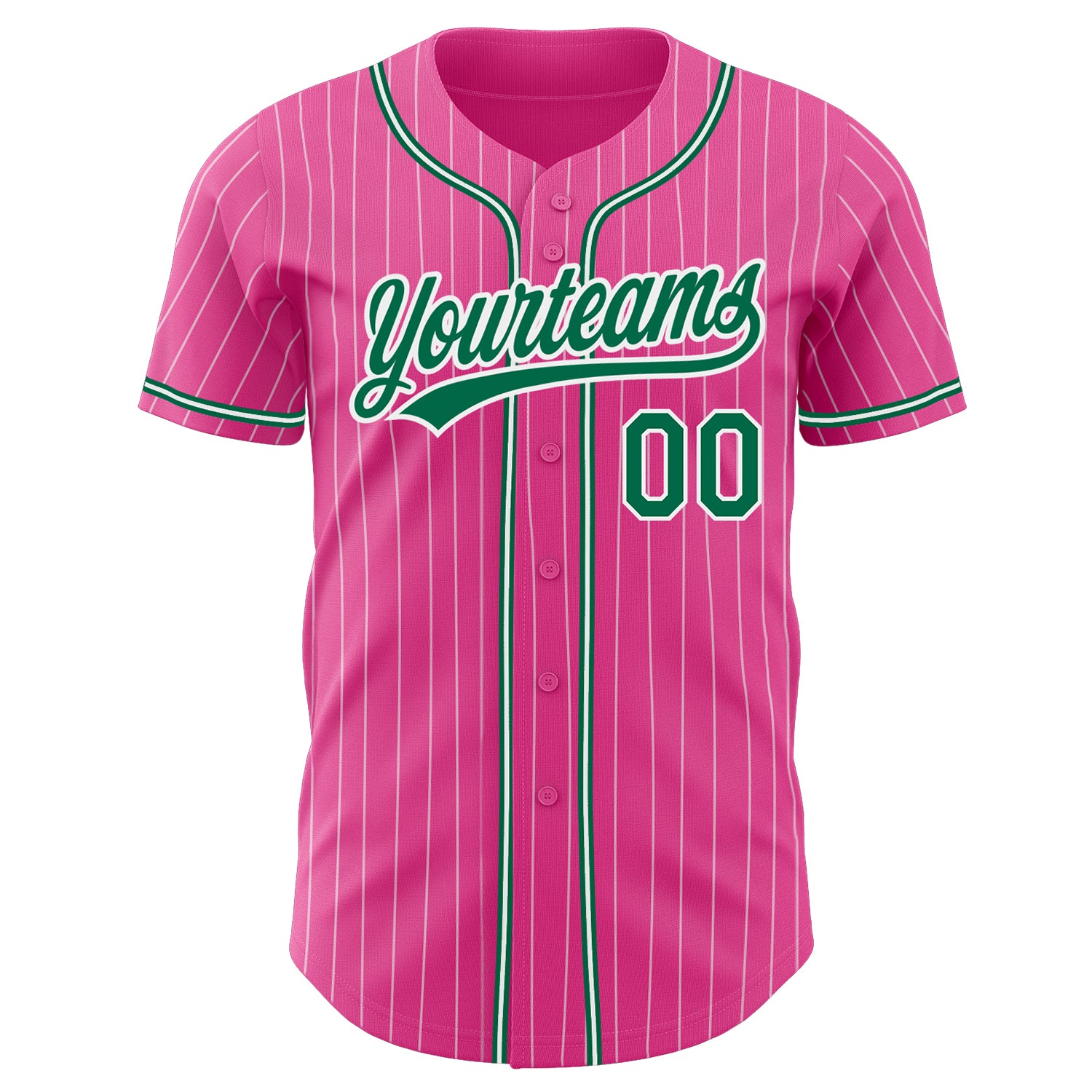 Custom Pink White Pinstripe Kelly Green Authentic Baseball Jersey